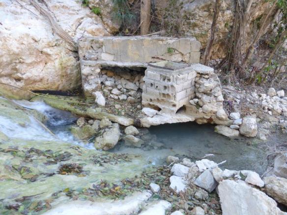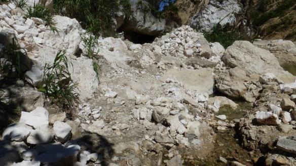 The Source D’Esperance spring is underneath the big white scar in the mountain.