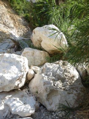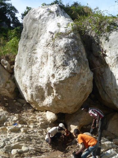 The rock in the center of the picture is held in place by the little round rock underneath. To keep this rock from rolling out and further blocking the path of the pipeline we had to make a masonry base around this rock to keep if from rolling. Earth tremors are common in this area and we will have men working close by with jackhammers causing a lot of vibration.